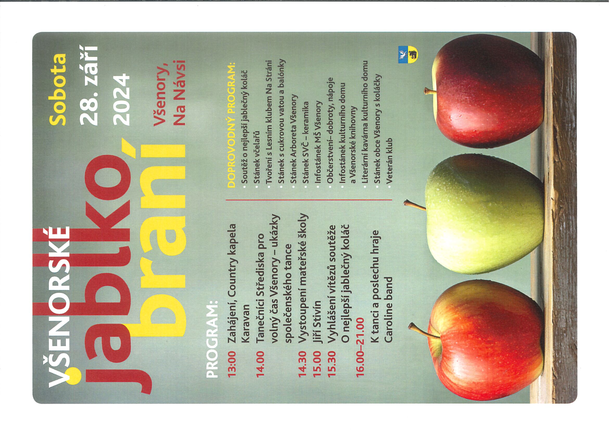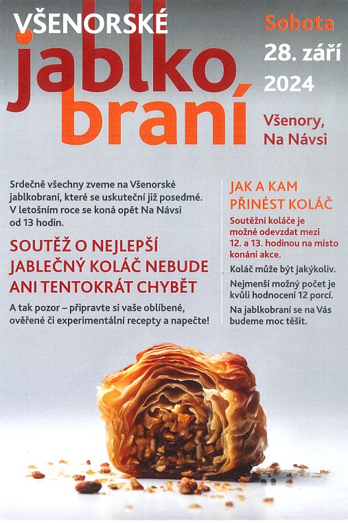 srdečně Vás zveme na Všenorské JABLKOBRANÍ, které se koná tuto sobotu 28.9.2024 od 13:00 Na Návsi.