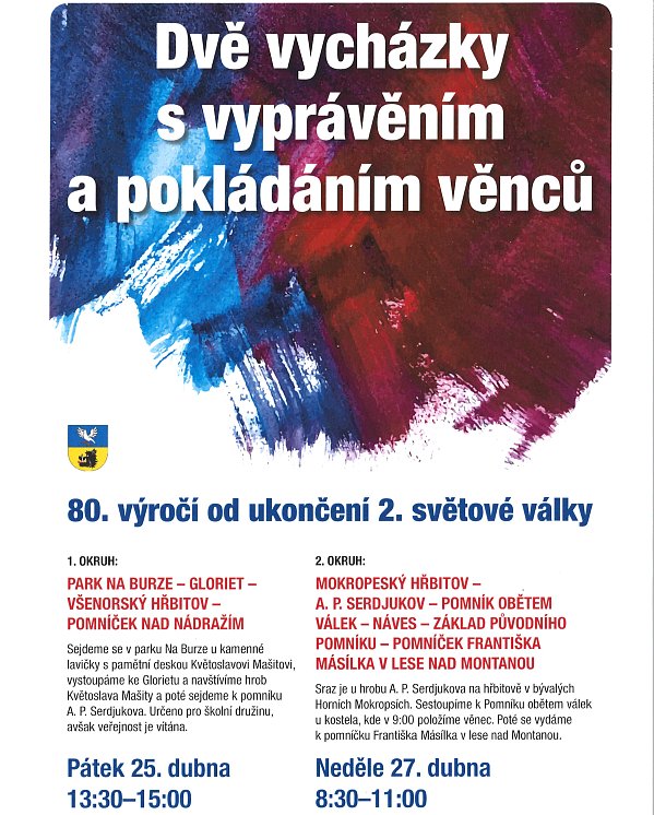 Připravili jsme pro Vás dvě vycházky, na kterých si budeme vyprávět tři příběhy hrdinů a zároveň položíme věnce k pomníčkům, které připomínají statečné oběti. Pojďte se s námi projít po rozkvetlých Všenorech.