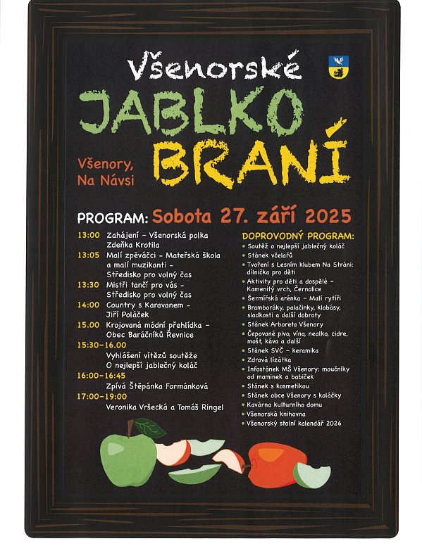 posíláme Vám pozvánky na zářijové akce konané ve Všenorech. Naše tradiční JABLKOBRANÍ a pozvánku na akci Zažít město jinak.